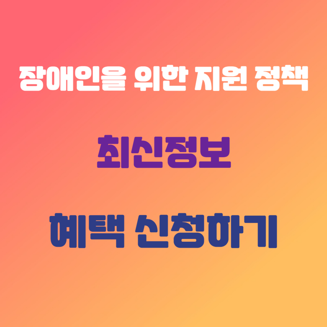 장애인을 위한 특별 지원 정책부터 다양한 혜택까지 최신 정보를 확인하고, 신청 방법과 자세한 내용을 확인하여 지원정책을 여기에서 쉽게 신청하시기 바랍니다. 놓치지 말고 지금 바로 확인하세요!